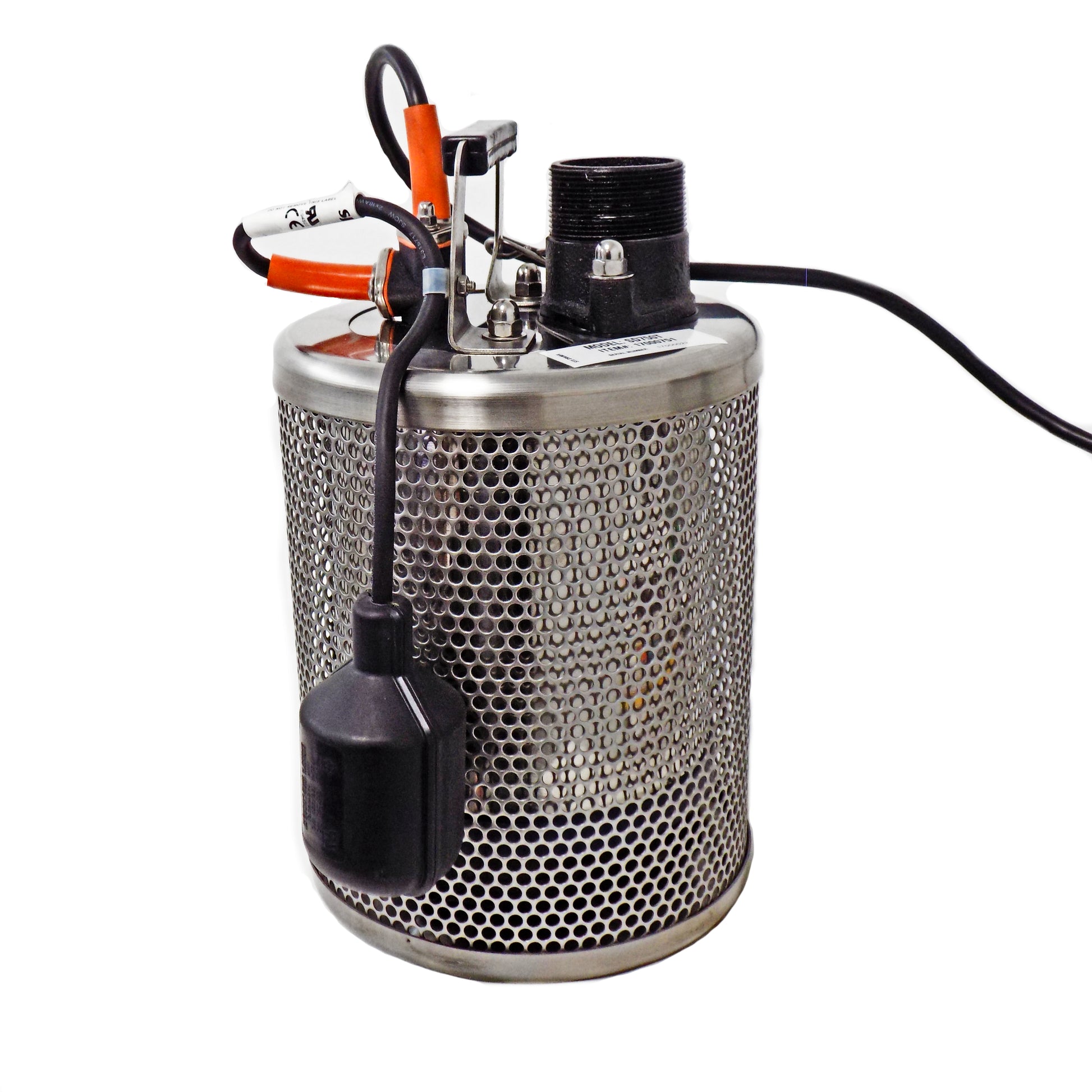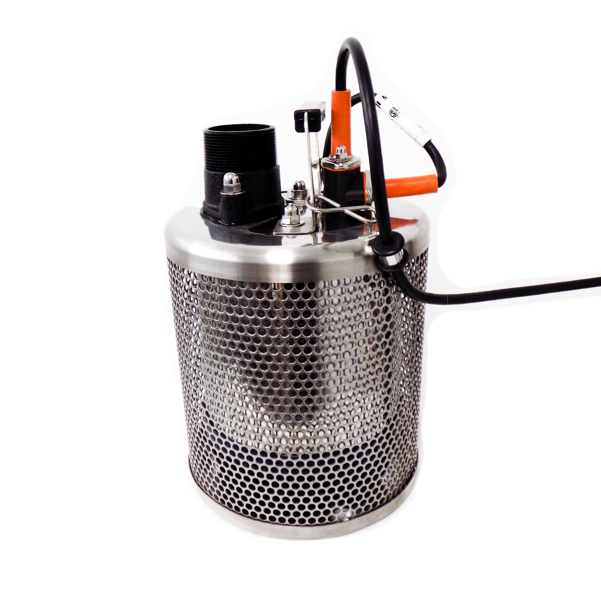 The SD 400 T 1/2 Hp (400Watt) is a fully submersible pump, designed to resist lightly contaminated water or saltwater. With the internal pump housing built from 304 Stainless Steel, an incredibly strong PolyurethaneI Impeller, and all encased in our patented 304 Stainless Steel cage, the SD 400 T comes with a Tethered External Adjustable Float. The 400 T can work vertically or horizontally and keeps working no matter how debris-filled the water gets. 61 Gallons Per Minute with 5’ lift and maximum Head of 36’. It comes with 33’ power cord, runs off 110-Volts, draws 5.6 Amps, and has 2” NPT male discharge flange to accommodate lay flat construction hoses. Perfect for Saltwater, water treatment plants, marine salvage yards, barges, scrapyards, carwashes etc. Our toughest pumps are ready for whatever you throw at them.